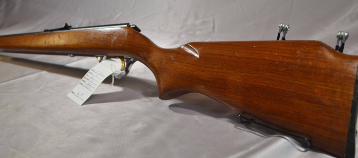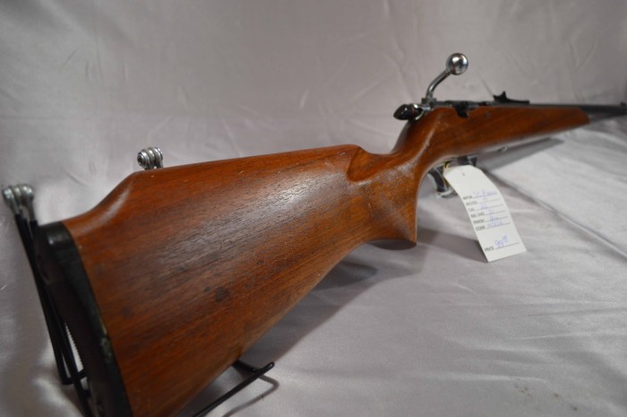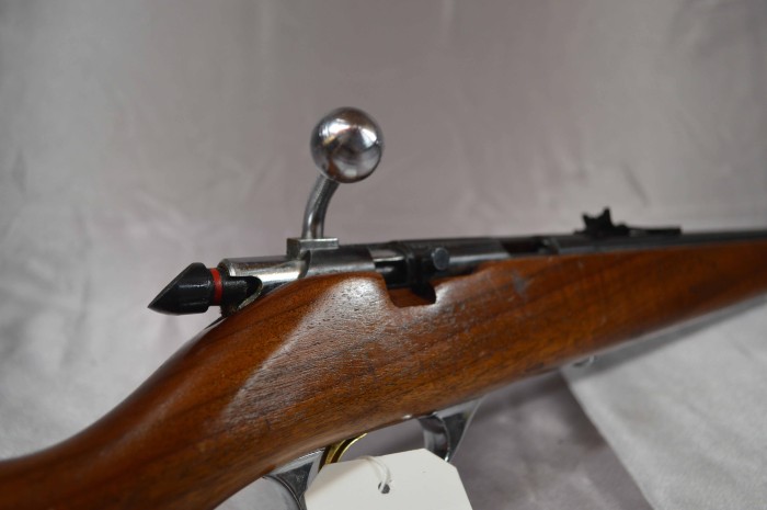 This is an older (no serial number) bolt action / single shot .22 rifle in good condition. It has it's badges of honor and minor signs of use, but overall this one's in pretty good condition. The bolt operates smoothly and the bore is clean and pitt free.