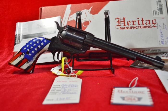 This is a factory new "Stars & Stripes" .22lr revolver. with original box, papers and acssys. The barrel is 6 1/2"