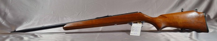 This is an older (no serial number) bolt action / single shot .22 rifle in good condition. It has it's badges of honor and minor signs of use, but overall this one's in pretty good condition. The bolt operates smoothly and the bore is clean and pitt free.
