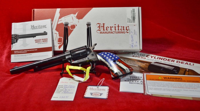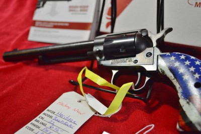 This is a factory new "Stars & Stripes" .22lr revolver. with original box, papers and acssys. The barrel is 6 1/2"