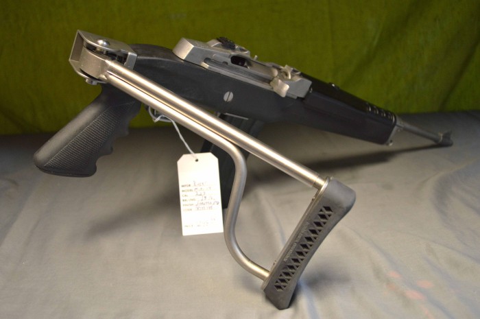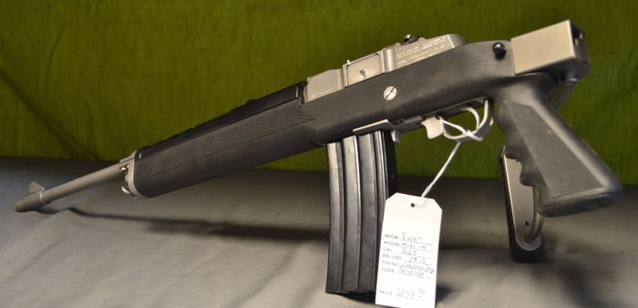 This is a very clean pre-owned Ranch Rifle, there are no signs of use or wear on this one. The "Sporterization" includes adding a poly stock with a stainless folding buttstock and a pistol grip. 1 thirty round magazine is included